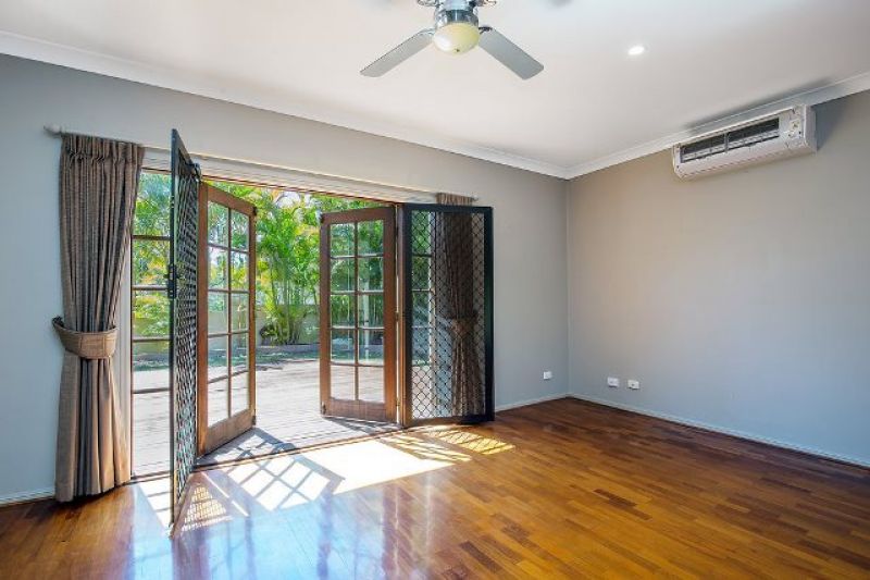 - Air-conditioned lounge room featuring beautiful French doors that open to the outdoor deck, blending indoor and outdoor living seamlessly.