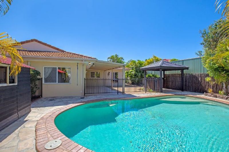 Outdoors, this property truly shines with its resort-style features. A large undercover alfresco area, private front yard with lawn and decking, and a stunning oversized pool framed by a tranquil Bali hut create the ultimate outdoor sanctuary. The fully fenced yard provides security for children and pets, while extras like a garden shed, double lock-up garage, and security screens throughout add practicality to its charm. Located close to quality schools, local shops, and parklands, this home offers an unbeatable lifestyle opportunity in one of Arundel’s most desirable pockets.