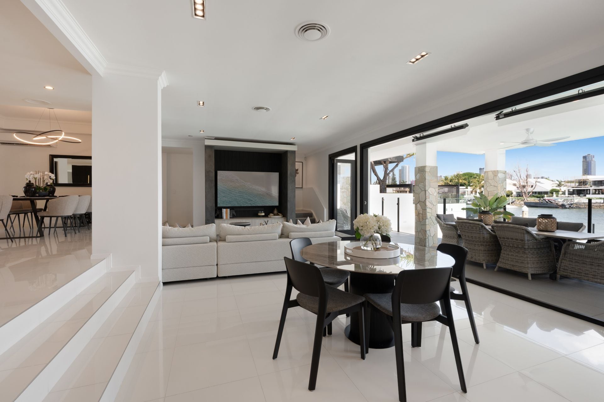 • Oversized alfresco entertaining space capturing pool and water vistas, ideal for large gatherings and sunset entertaining