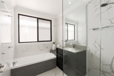 • Three beautifully modern bathrooms showcasing high-end fixtures and sophisticated finishes
