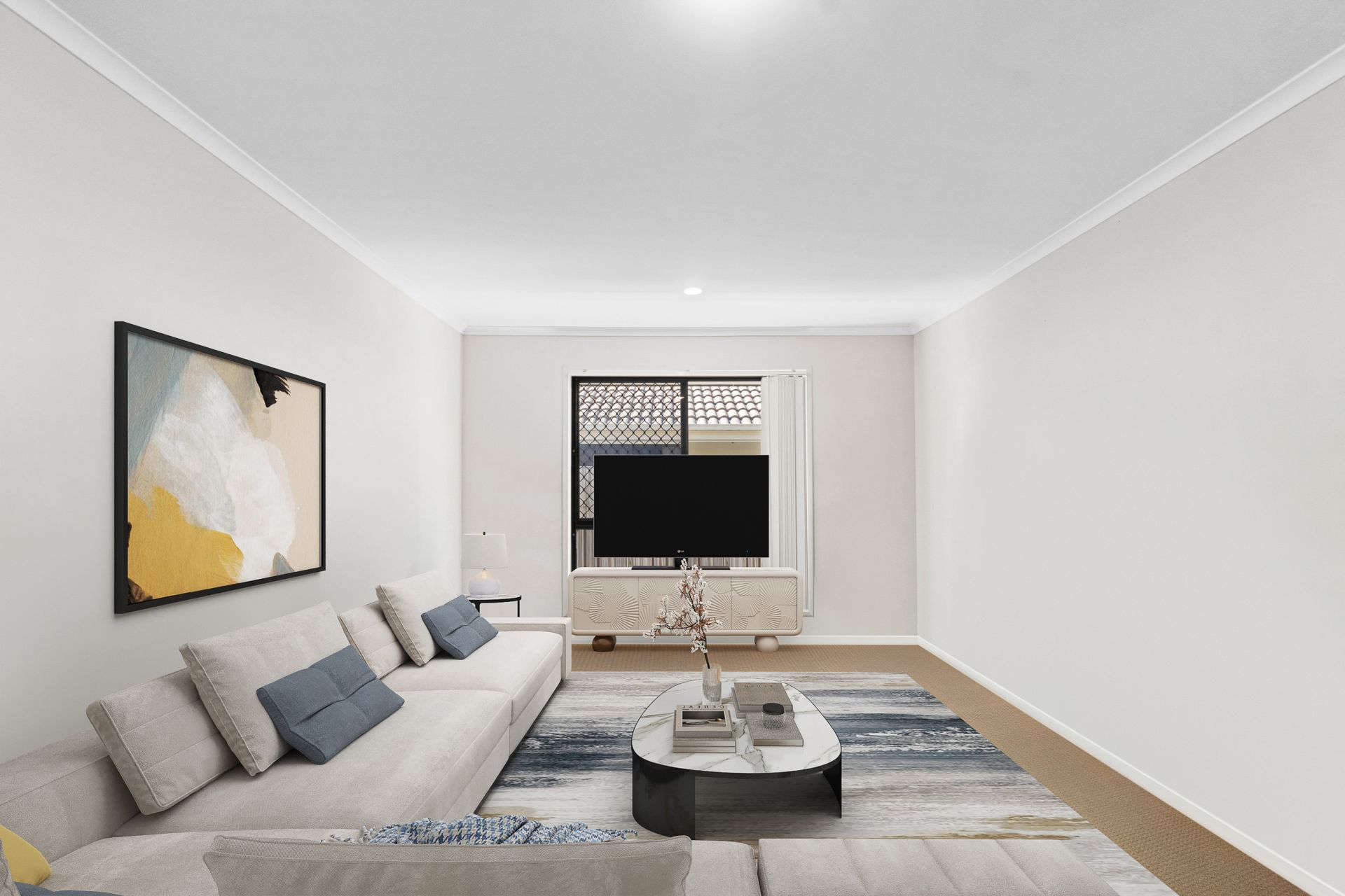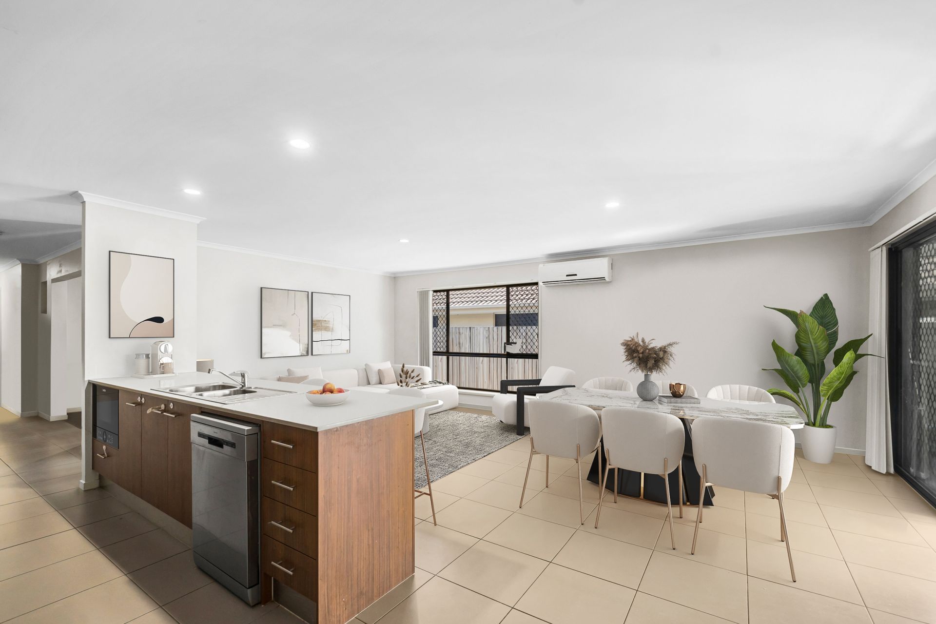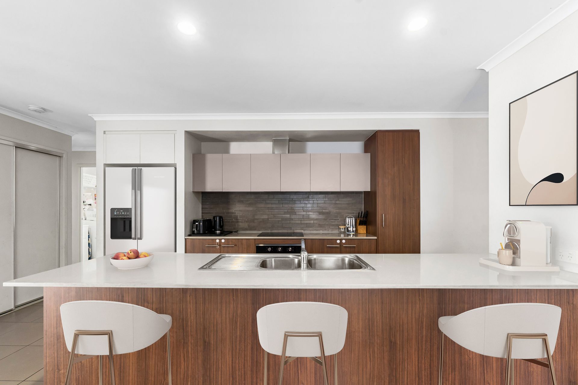 Welcome to 68 River Run Circuit, Ormeau Hills, a beautifully presented, family home nestled in one of the suburb’s most serene and elevated pockets. This thoughtfully designed residence seamlessly combines style, space and functionality, offering a relaxed and low-maintenance lifestyle without compromise. Whether you’re a growing family, an avid entertainer or a smart investor seeking a high-performing asset, this home delivers on every front. Boasting four bedrooms, two bathrooms and multiple living zones, this home offers the ideal balance of communal and private spaces. At the heart of the home is a contemporary open-plan kitchen, living and dining area where natural light streams through wide windows, creating a warm and welcoming space. The kitchen is beautifully appointed with stone benchtops, sleek stainless-steel appliances, electric cooktop, and a large breakfast bar – perfect for casual meals or morning routines. Ample cabinetry, a large pantry and chic stone styled splashback complete the picture, making this kitchen as practical as it is stylish. This large kitchen and living space flows effortlessly onto the covered alfresco area, offering a peaceful, leafy outlook and a perfect space to entertain guests, relax with a drink, or enjoy weekend barbecues.