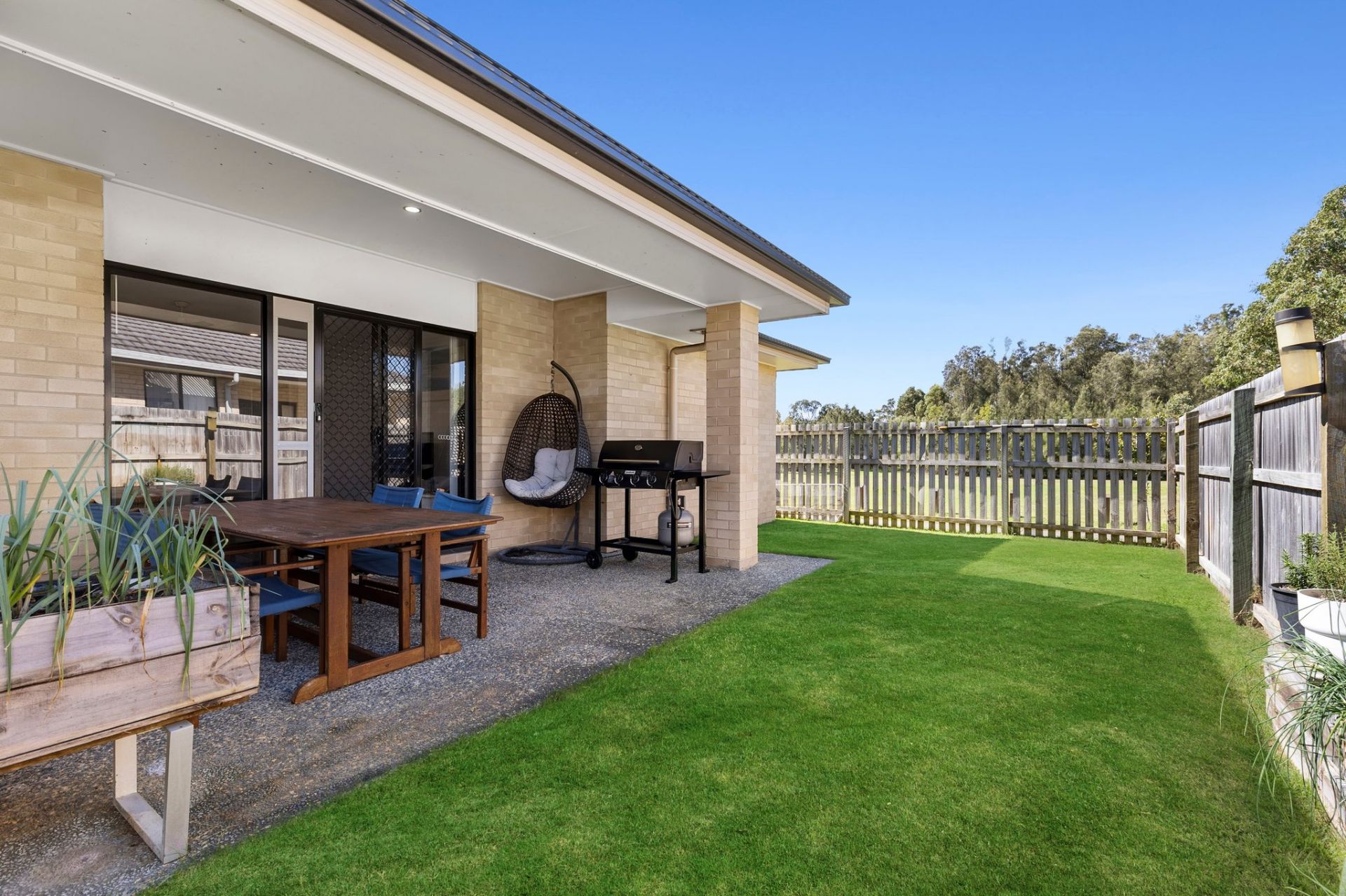 - Covered alfresco area overlooking a private, low-maintenance backyard